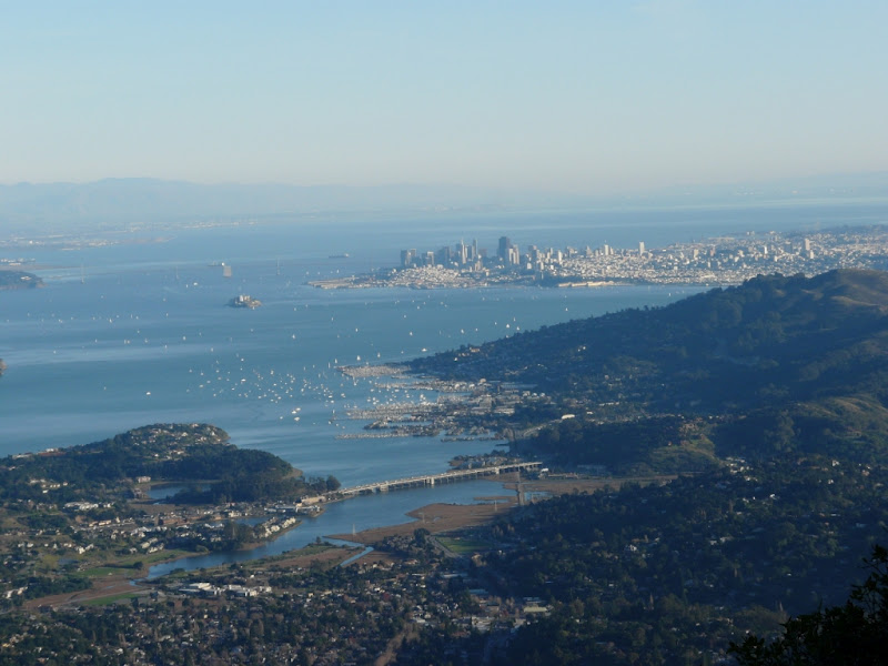 Après 15 bonnes minutes de marche à travers racines, cailloux et rochers, nous voilà tout en haut avec une vision à 380° sur la baie de San Francisco et d'où tout parait minuscule.